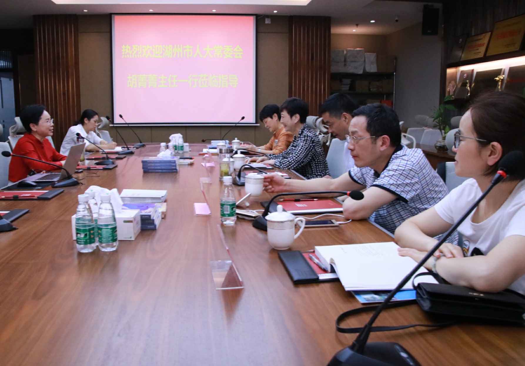 4月26日,湖州市人大常委会胡菁菁主任一行莅临半岛平台在线登入-半岛(中国)总部考察指导,集团董事长、广东省湖州商会会长官金仙热情接待了胡主任一行。