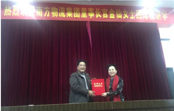 官金仙董事长还通过多媒体向师生介绍她现在的物流企业。她二十几年如一日,将一个小小的货运部发展成为现在拥有十二大物流基地、业务网点遍及全国170多个大中城市的综合型现代化物流企业——“广东半岛平台在线登入-半岛(中国)有限公司”。官金仙董事长领导的半岛平台在线登入-半岛(中国)在推动和引领中国民营物流企业由传统经营模式向现代经营模式转变和改革的过程中做出了积极的贡献,从担当起“振兴家族”意识——“企业家责任”意识,实现了人生道路上的重大飞跃,讲到这里,全场爆发了热烈的掌声。