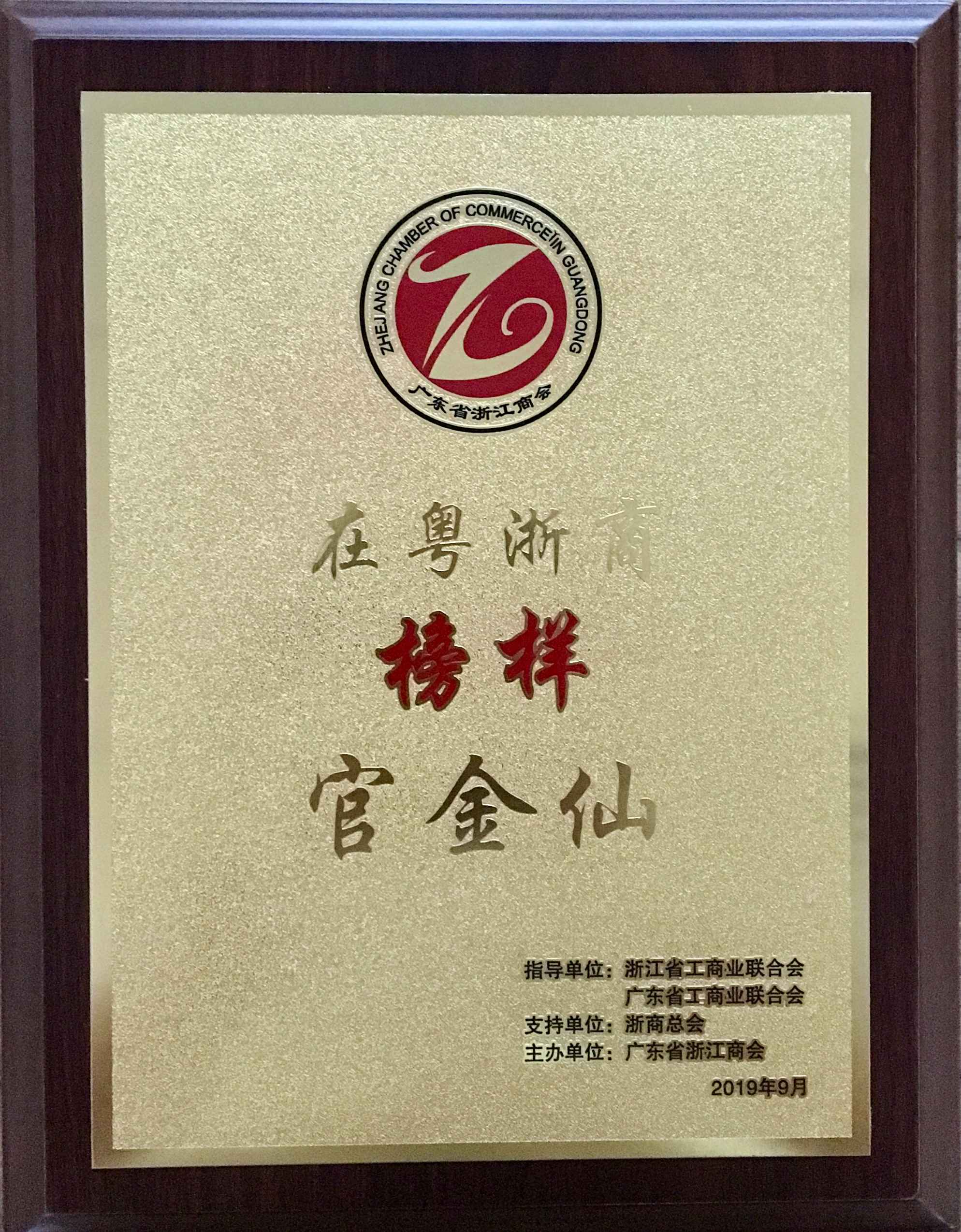 官金仙董事长荣获在粤浙商“榜样”